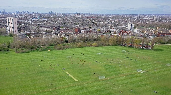 倫敦東北部的哈克尼沼澤,有100個(gè)左右的業(yè)余足球場(chǎng)地,是業(yè)余足球的天堂。成千上萬(wàn)的業(yè)余球員在這里揮灑汗水,釋放激情。