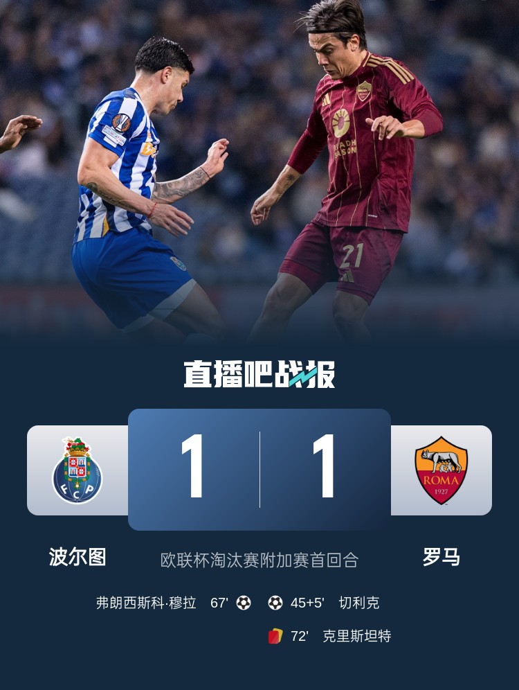 歐聯(lián)-十人羅馬1-1波爾圖 切利克破門(mén)迪巴拉傷退克里斯坦特被罰下